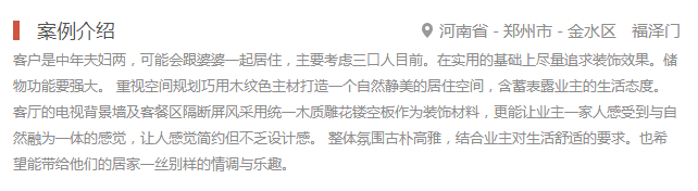 3、案例簡介需包含:項目名稱、地址、家裝家具一體價 (價格標(biāo)準(zhǔn):阿拉伯?dāng)?shù)字加萬元) 、案例簡介。例如下: