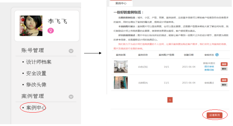 1).設(shè)計師登錄點擊昵稱進入個人信息管理中心。
