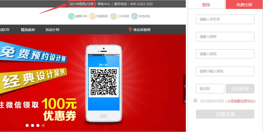 1.2)如已注冊(cè)過(guò)賬號(hào),可直接點(diǎn)擊“請(qǐng)登錄”。沒(méi)有注冊(cè)過(guò)帳號(hào)的請(qǐng)點(diǎn)擊“注冊(cè)”。(注:填寫(xiě)個(gè)人信息昵稱(chēng)須為設(shè)計(jì)師的姓名,四個(gè)漢字以?xún)?nèi)。)