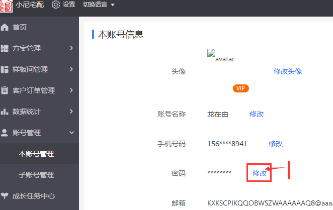 3.3).修改密碼——在帳號(hào)管理->子帳號(hào)管理->密碼處修改密碼。