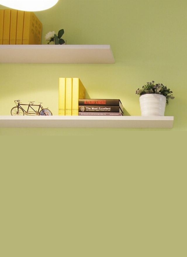 餐廳背景墻使用健康的黃綠色,整個(gè)空間明亮簡(jiǎn)潔。