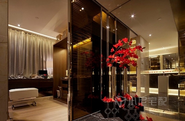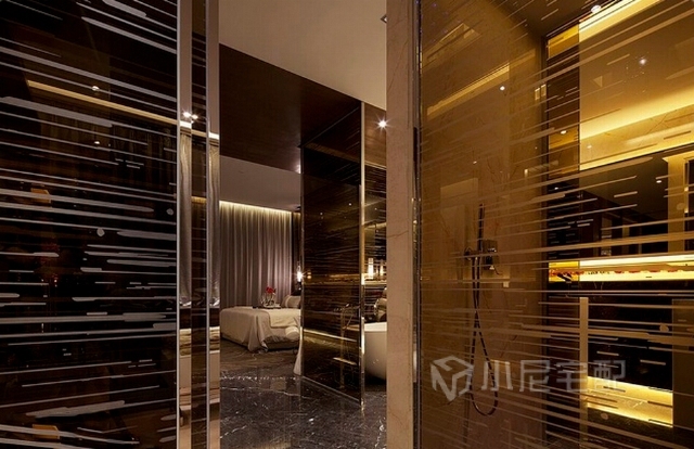 金屬是工業(yè)化社會(huì)的產(chǎn)物,也是體現(xiàn)現(xiàn)代簡約風(fēng)格最有力的手段。本案在公共區(qū)域部分大量使用了鋼化拉絲玻璃、玫瑰金、不銹鋼等新型金屬材料作為輔材,閃亮的材質(zhì)配合燈光氛圍的營造,帶給人帶來時(shí)尚前衛(wèi)的感覺。