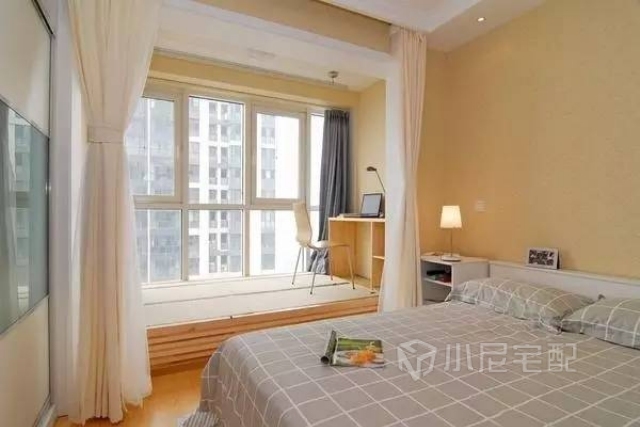 飄窗兼工作區(qū),周末可以躺在上面聽聽音樂看看書,多么愜意的一件事。