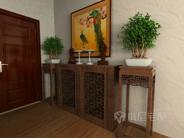 電視墻與電視柜的格調(diào)與中式家具相搭配,營(yíng)造和諧景象。