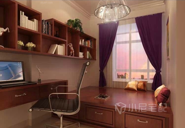 小尼定制蘋果木色書房榻榻米,時而專注,時而小憩。