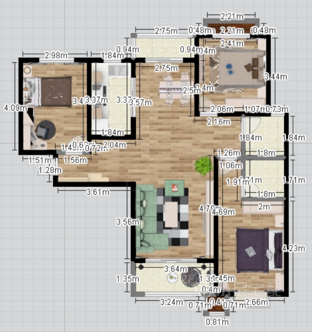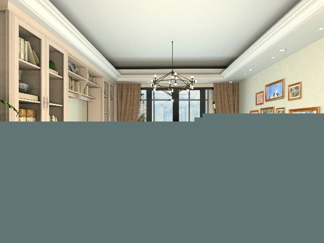 這套簡單電視柜、書柜加茶幾,配上這套綠色的沙發(fā),讓空間變的春意盎然。