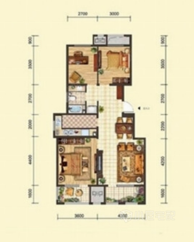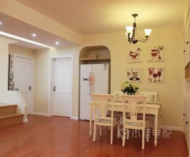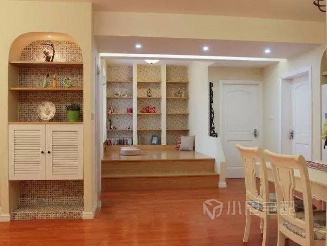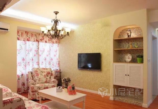 本案打造田園風(fēng)格主題就是以貼近自然,展現(xiàn)樸實(shí)生活的氣息,墻面以明媚的黃色為主色調(diào),背景墻處局部采用小尼魔畫點(diǎn)綴,搭配家具的洗白處理,創(chuàng)造處自然、簡(jiǎn)樸、高雅的氛圍。家裝家具一體價(jià):13萬(wàn)。