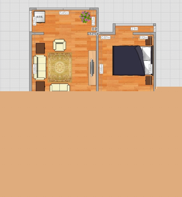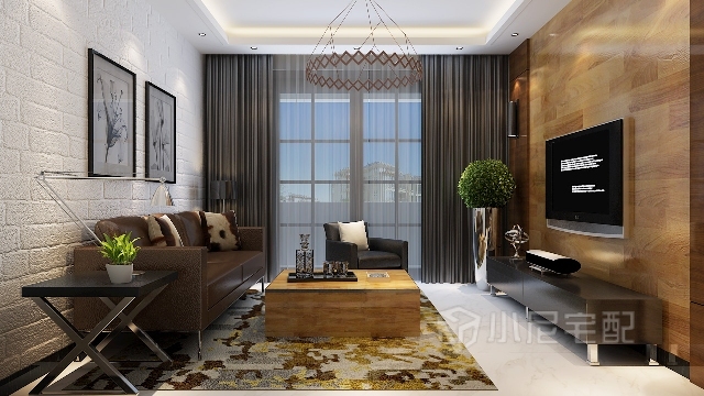 客廳的沙發(fā)與茶幾與背景墻遙相呼應(yīng),渾然一體。