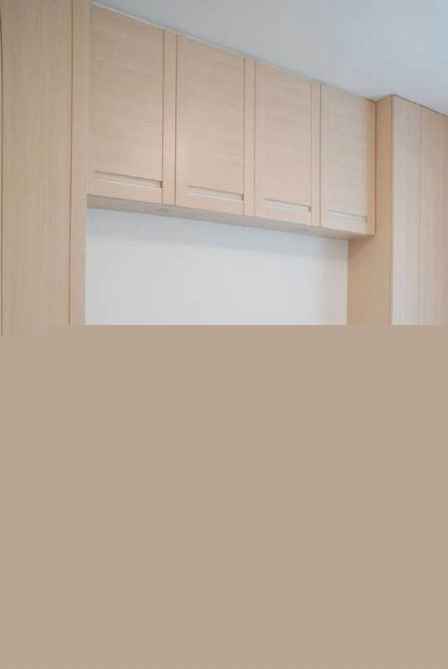 臥室不僅僅是休息的空間,同時(shí)可以在床頭增加一整排的吊柜,充分提高了儲(chǔ)物收納空間。