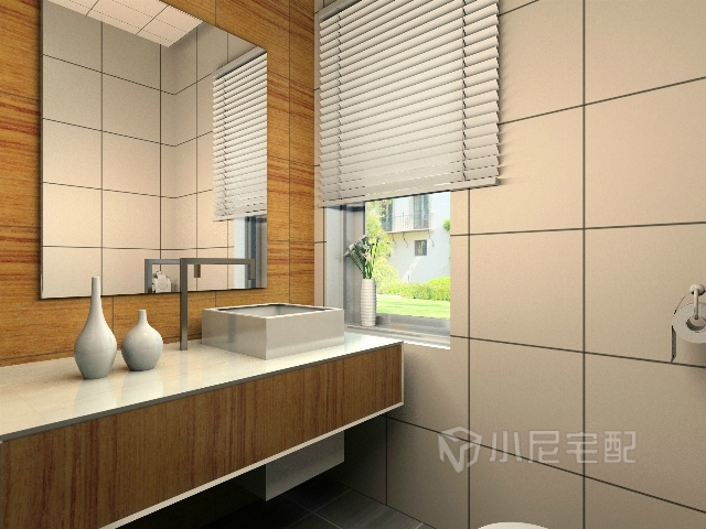 木紋的洗手池,搭配白色的臺面跟顯自然,潔凈。