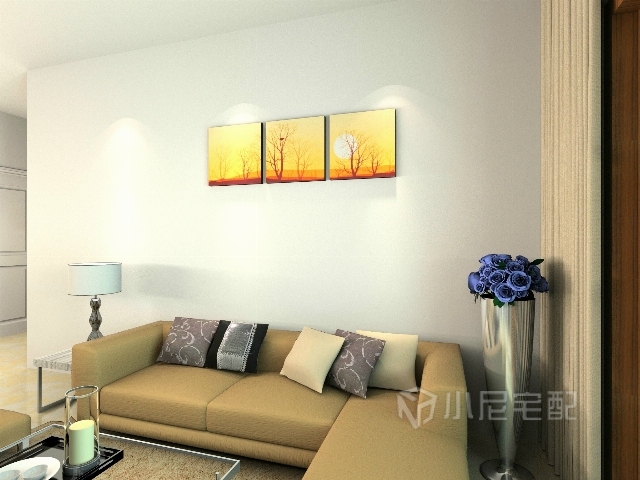 黃色的沙發(fā)搭配玻璃透明的茶幾,加上具有金屬質(zhì)感的花瓶,使現(xiàn)代感更強。