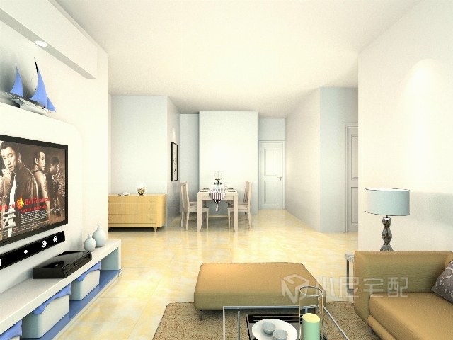 整個空間的顏色搭配以黃色為主,使整個空間顯得更加溫馨,家裝、家具一體價14.5萬。