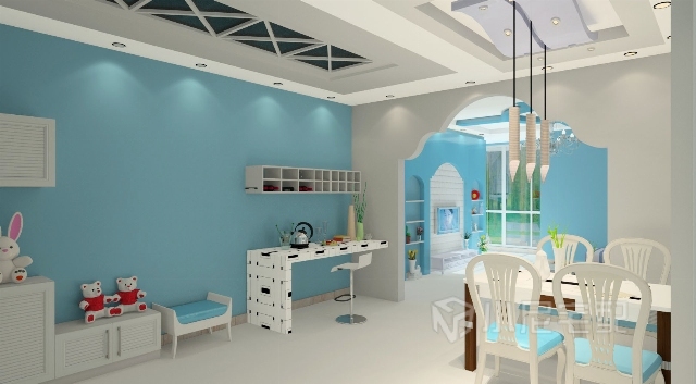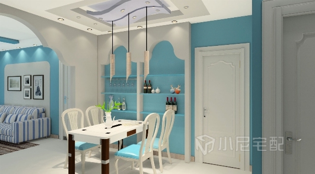本設(shè)計(jì)是一個(gè)地中海風(fēng)格設(shè)計(jì),設(shè)計(jì)主要以白藍(lán)色為主,運(yùn)用海洋元素船舵等加以點(diǎn)綴,連續(xù)的拱廊與拱門(mén)、陶磚、海藍(lán)色的屋瓦和門(mén)窗等是地中海風(fēng)格的主要設(shè)計(jì)元素,地中海風(fēng)格家具致力于將人們的生活融入花草之間,回歸自然,感受地中海式的風(fēng)光。