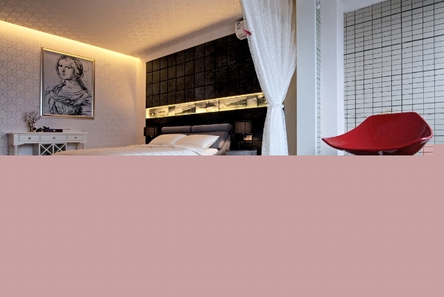 溫馨的臥室燈帶里的玫瑰花、名家的素描和黑白海景圖案,仿佛一場(chǎng)春華夢(mèng)境。