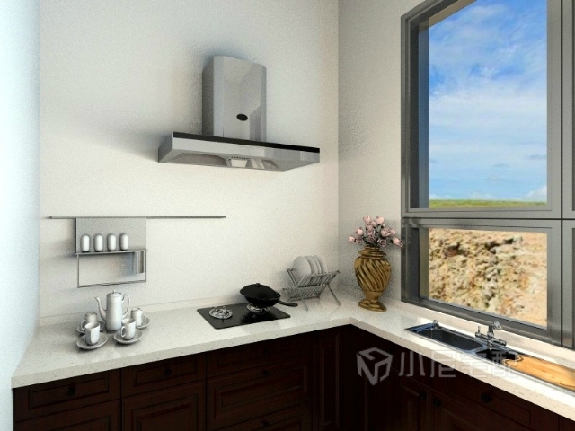 潔白的墻面以及白色大理石桌面不銹鋼吸油煙機(jī)給人帶來前衛(wèi)、不受拘束的感覺。
