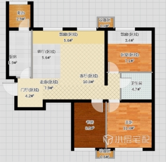 米黃色墻壁和巧克力顏色的床頭給人以素雅的感覺。相比主臥的黑白色調(diào)溫馨不少。