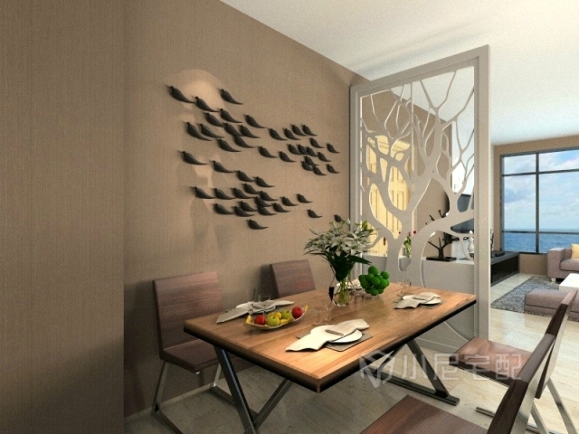 客廳和餐廳區(qū)域用裝飾架巧妙的劃分了功能空間背景墻沒有在造型上求太多的變化,表達(dá)出空間的縱深感及延續(xù)感