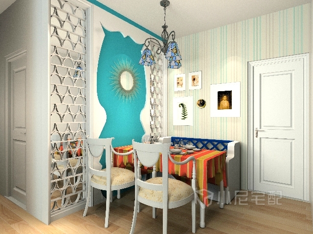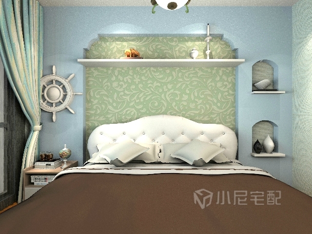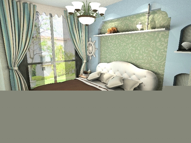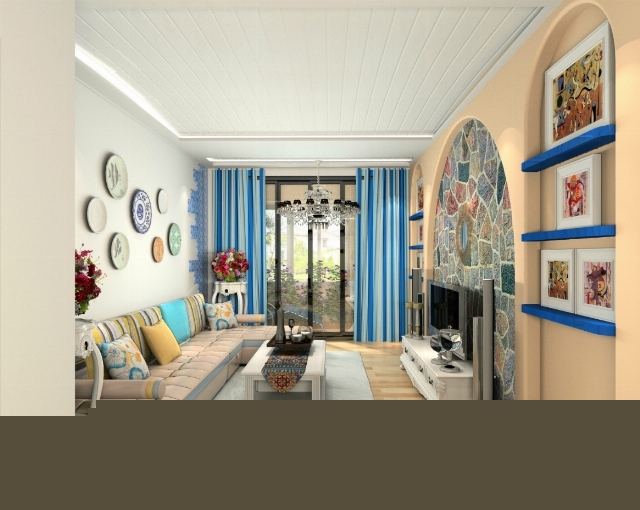以海洋的蔚藍(lán)色為基色調(diào)的顏色搭配方案,自然光線的巧妙運(yùn)用,富有流線及夢(mèng)幻色彩的線條等軟裝特點(diǎn)來(lái)表述其浪漫情懷。