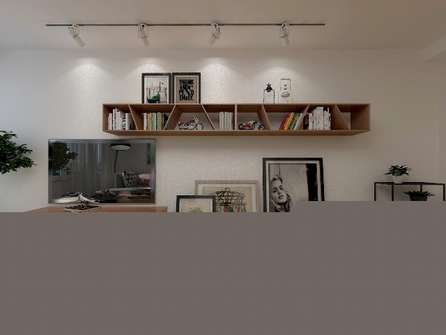 電視背景墻依然是白色與原木色的搭配,墻上的書架安然隨意,以后也可以擺放一些裝飾品或者照片在上面,都會成為這個(gè)空間的點(diǎn)綴。