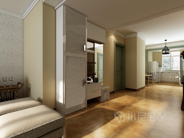 白的的仿古磚,木飾面影視墻,悠閑而典雅,搭配法國(guó)灰的木門(mén),標(biāo)準(zhǔn)的田園風(fēng)格。