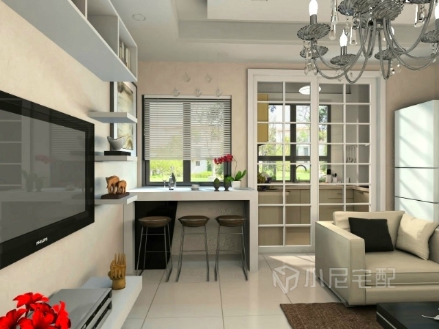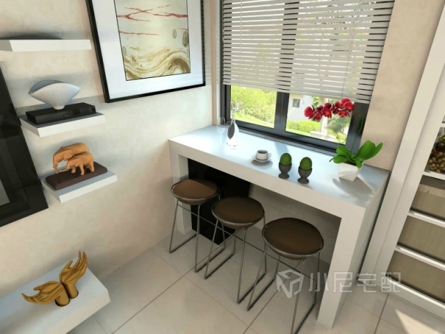 餐桌設(shè)置為吧臺樣式,位于窗口,便于節(jié)省空間,用餐同時(shí)觀景更顯愜意。
