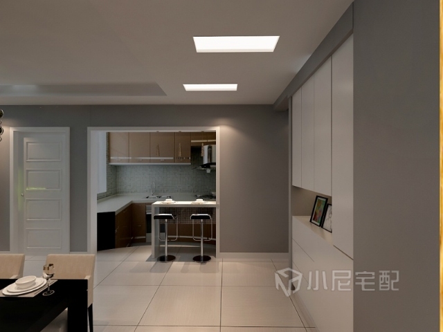 餐廳與客廳之間形成半通透半遮蔽隔斷,使得整個(gè)空間流暢統(tǒng)一。