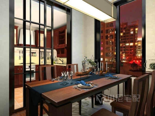 餐廳與廚房相連,一家人在一起做飯吃飯其樂(lè)融融。