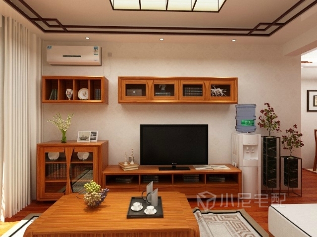 客廳:以木質家居為主,但不是復古式的桌椅,而是富有現(xiàn)代感的沙發(fā)和茶幾。除了保留中式的韻味外,還加了玻璃、燈帶等現(xiàn)代材料,使空間又包含了現(xiàn)代生活氣息;光源上使用簡潔幾何燈具,大量采用自然光;在家具搭配上主要取材于自然,以木材為主。