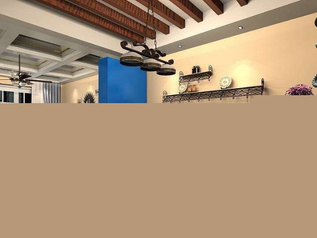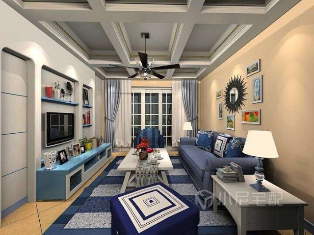 地中海風格的靈魂就是“蔚藍色的浪漫情懷,海天一色、艷陽高照的純美自然”。設計中添加咖色以中和色調(diào),爛漫中不失沉穩(wěn)