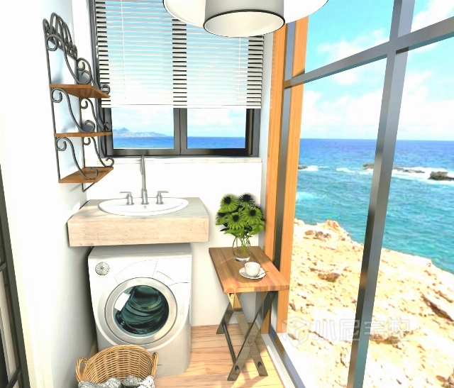 洗衣臺在陽臺上,很方便