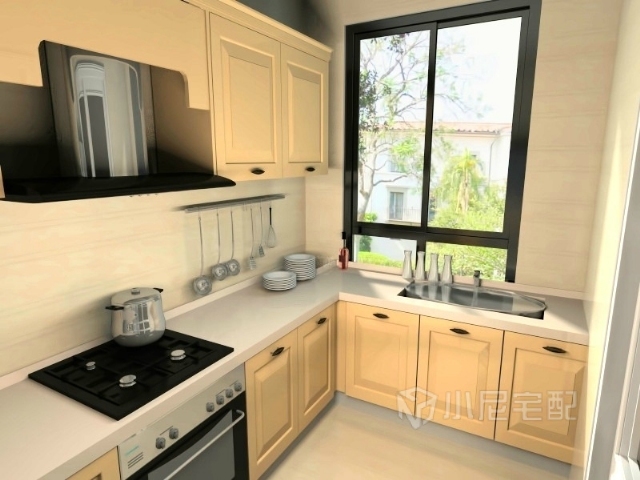 米黃的臺(tái)面和白色的墻面融合,提高了廚房膚色。果然是內(nèi)斂型的干凈低調(diào)啊。