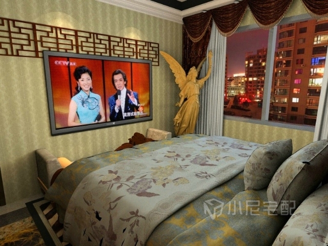 在角落里面放個雕像,電視上面做了個墻飾,要不這些地方太曠