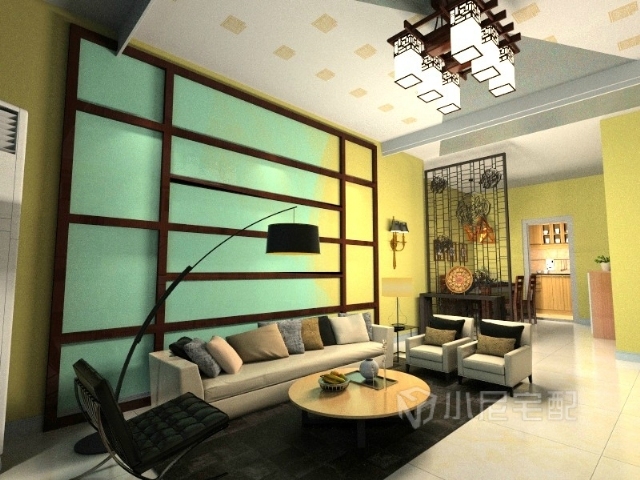 現(xiàn)代感十足的沙發(fā) 呼應(yīng)中式電視柜 壁紙和整體風(fēng)格在變化中得到統(tǒng)一