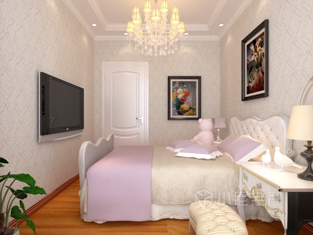 女兒房同男孩房一樣,采取軟裝的突出色調(diào)彰顯公主之雅