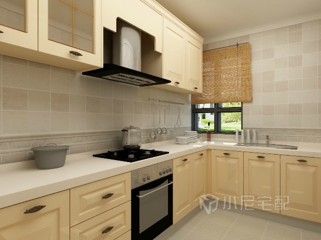 廚房選用了帶有田園風(fēng)格的櫥柜,功能齊全,簡(jiǎn)約時(shí)尚。