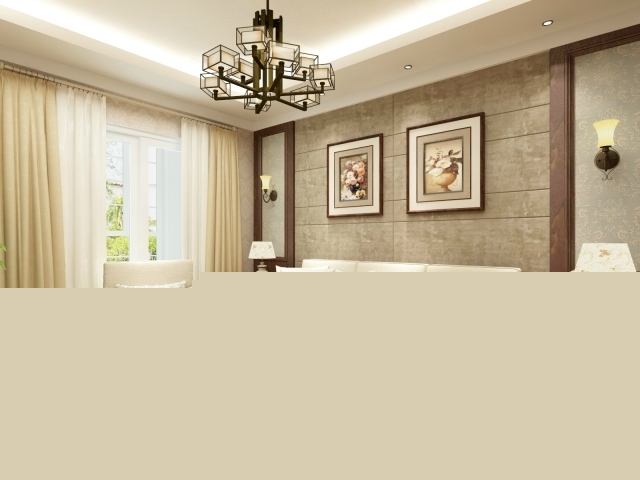 米白色的中式沙發(fā),用鮮艷的抱枕點(diǎn)綴,顯得活潑有趣。沙發(fā)背景墻選用木材與布藝結(jié)合的方式,顯得既安全又舒適。