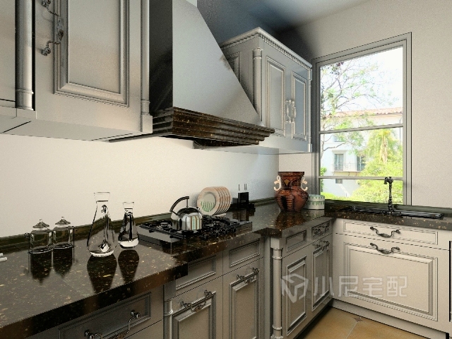整體櫥柜,簡約而有內(nèi)容,包覆的柜門,加上幾根羅馬柱的襯托,家的感覺就在這里