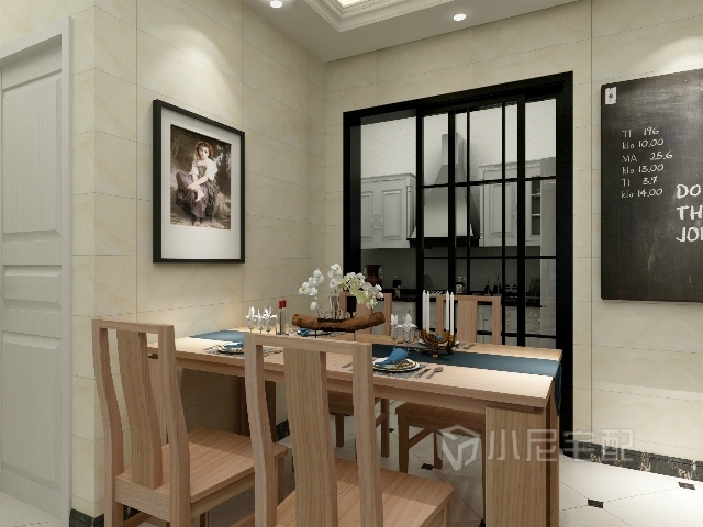 餐廳的設(shè)計(jì)十分簡單,出于對空間的利用,餐廳只占了很小的一部分,用一幅畫作為點(diǎn)綴。