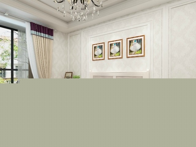 歐式的背景墻和裝飾畫,與客廳餐廳配套的床和柜,顯得整體協(xié)調(diào)統(tǒng)一。