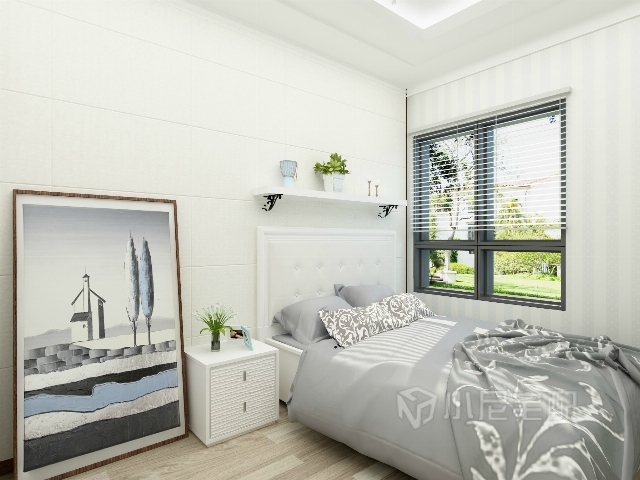 個(gè)性的裝飾畫,舒適溫馨的軟床,沒有過多的裝飾,顯得干凈純粹。