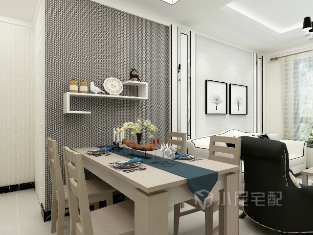 餐廳的布置十分簡潔,個(gè)性的壁紙?jiān)黾訒r(shí)尚感。