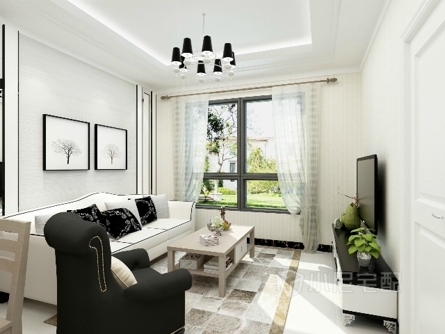 現(xiàn)代的背景墻,簡約的裝飾畫,黑白搭配的沙發(fā)顯得干凈利落。