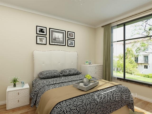 簡約的背景墻,點綴的裝飾畫,沒有復雜的裝飾,簡潔即是豐富。