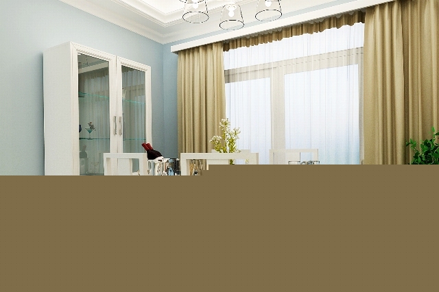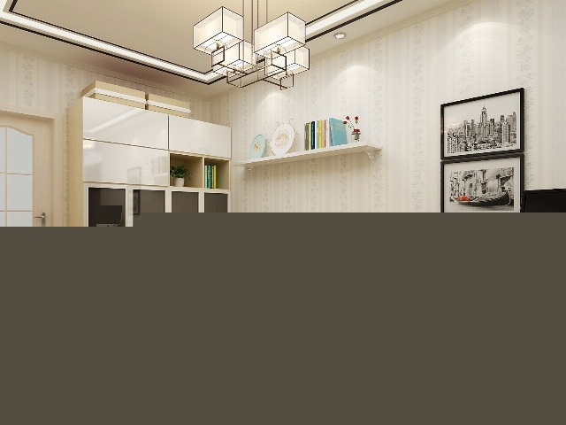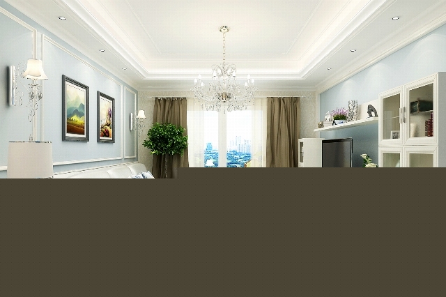 簡潔的石膏線造型,白色皮質(zhì)沙發(fā),不同的材質(zhì)帶來不同的質(zhì)感體驗(yàn)。