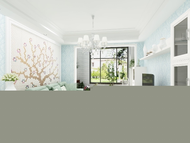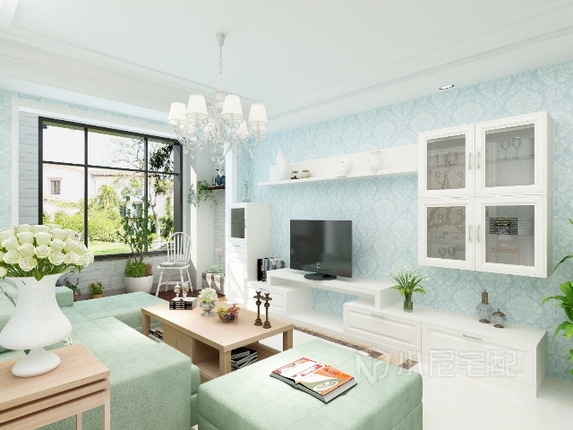 淡藍色的壁紙和白色的電視柜,看上去就非常干凈整潔