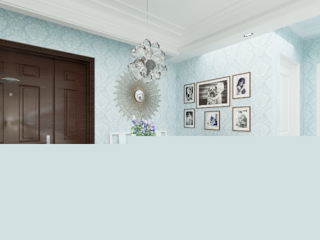 這是進門最先看到的位置,空間采用淡藍色和淺綠的搭配,有一種小清新的感覺