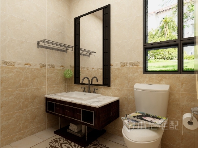 衛(wèi)生間搭配黃色的墻磚和腰線,歐式衛(wèi)生間的氣息就這么彰顯出來了