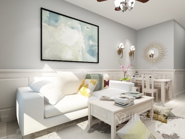 客廳內(nèi)采用了墻裙的設(shè)計(jì),高端品位一下子就出來(lái)了