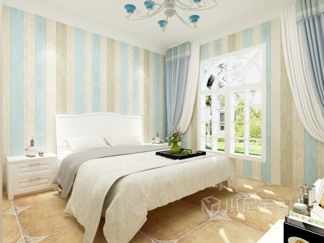 臥室整條壁紙,用壁紙的紋理增加空間的層次感