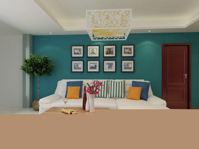 深色的背景,白白的沙發(fā),藍(lán)黃的抱枕,顏色交相呼應(yīng),整個(gè)空間看起來和諧而寧靜